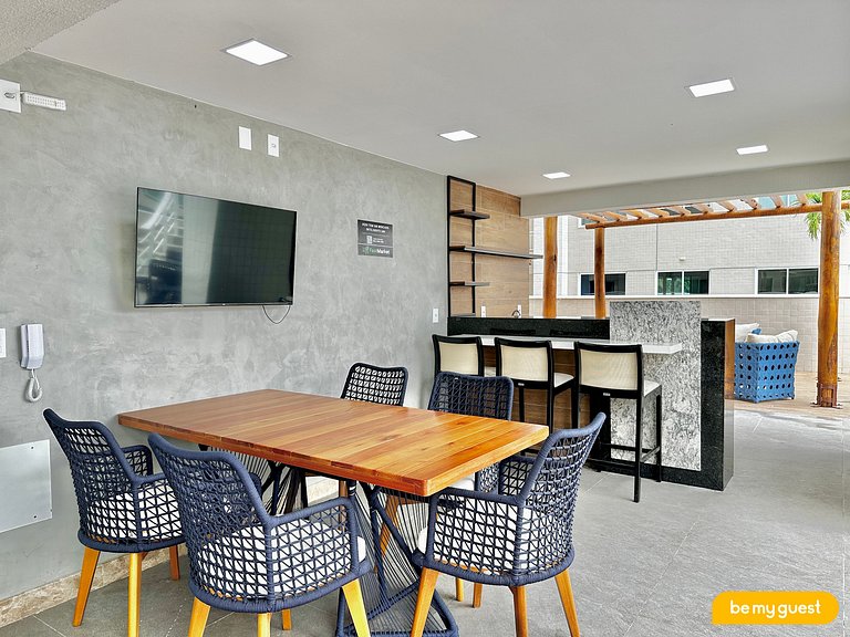Além disso o condomínio possui academia, piscina ampla, deck para eventos, sauna, salão de beleza, salão de festa e um mercadinho próprio para trazer todas as comodidades necessárias para uma estadia tranquila e completa.